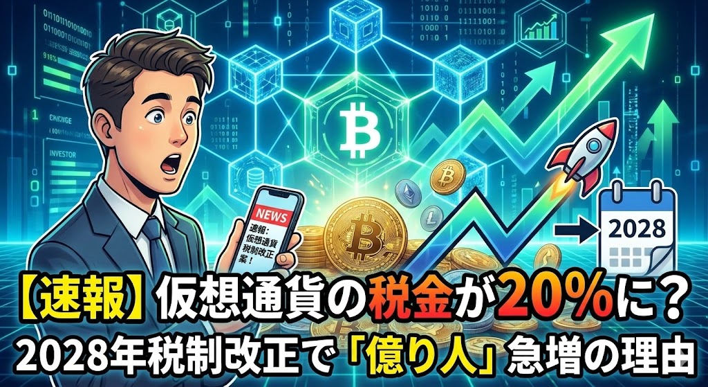 【速報】仮想通貨の税金が20%に?2028年の税制改正で「億り人」が急増する理由
